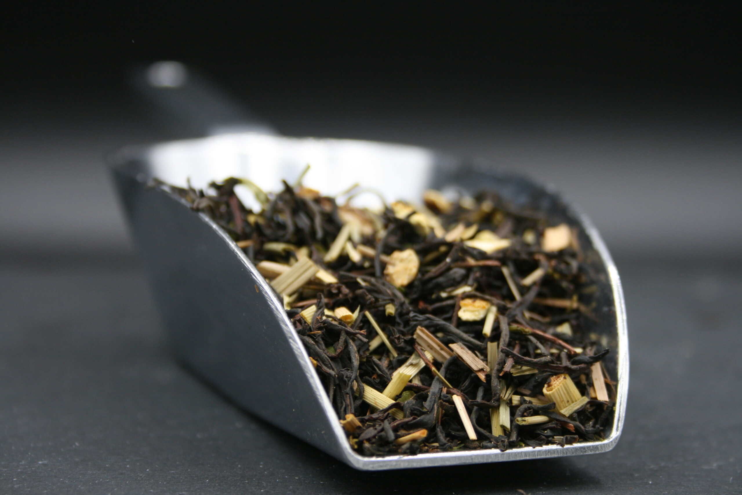 Thé noir Rukeri, citronnelle, Keemun, écorces d’orange, arôme naturel de citron, verveine, arôme naturel d’orange, Huile essentielle de citron vert, arôme naturel de pamplemousse, arôme naturel de bergamote, Huile essentielle de mandarine, arôme naturel d’orange sanguine.